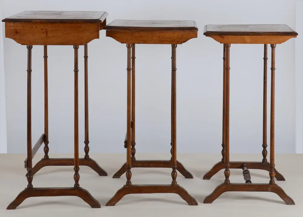 A nest of 3 side tables with marqueterie, France, ca. 1900