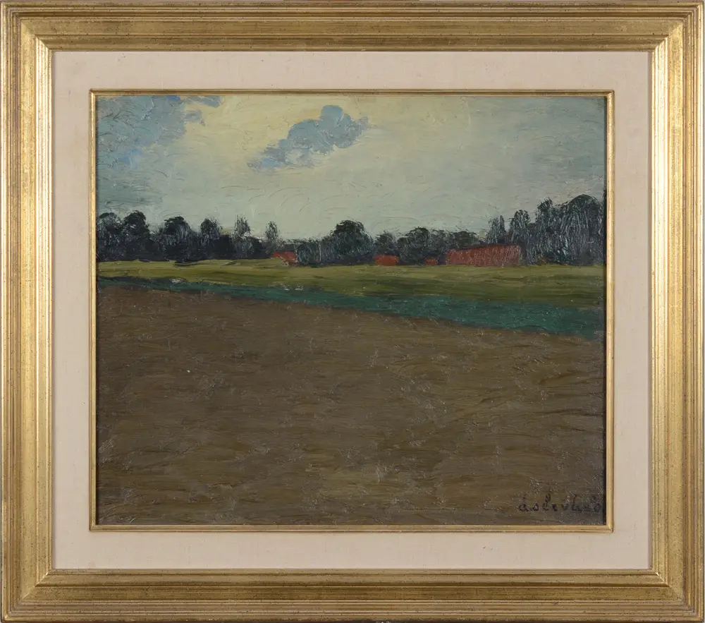 Albert Servaes (1883-1966), an early expressionist landscape around Sint-Martens-Latem by this forerunner of expressionism, oil on canvas laid down on board, signed and dated bottom right 'a. servaes 1913', 41 x 48,5 cm, with the later frame 56 x 64 cm.
