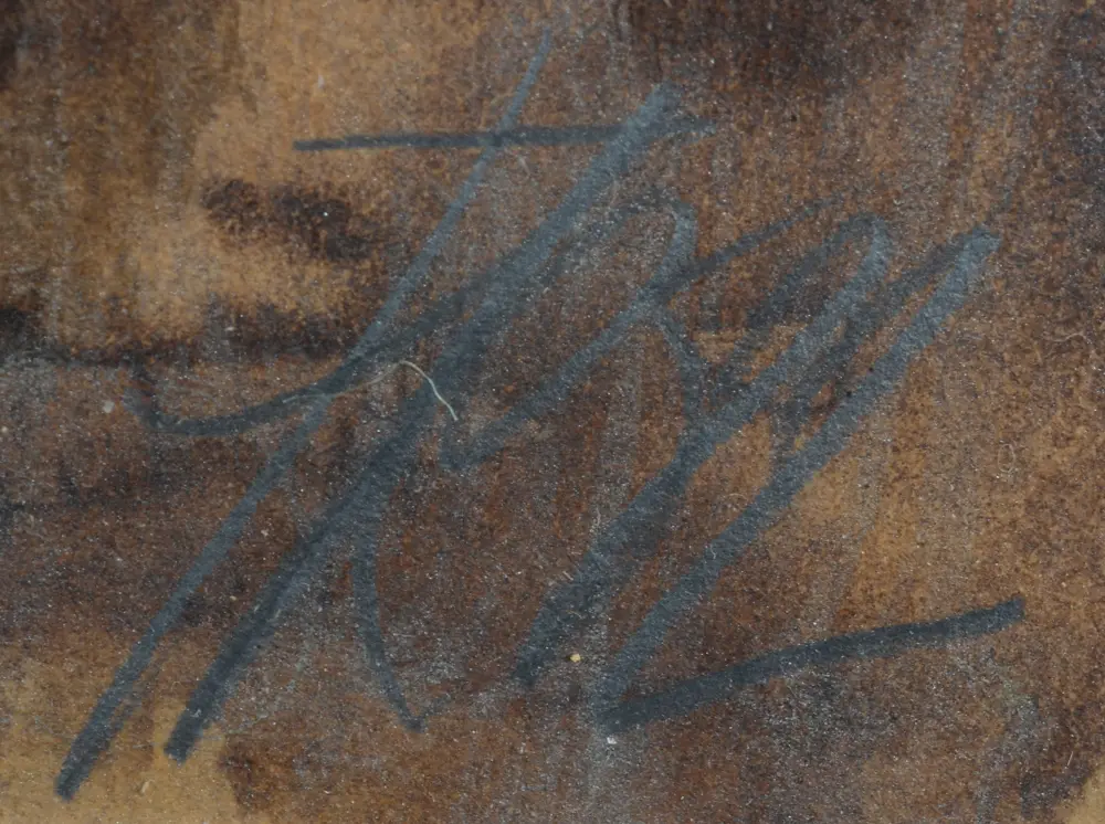 Frits Vertongen (1939-1997), Dit is dan een vredesuil (This is a peace owl), 1982, a rare watercolour, signed with the monogram and dated bottom right, 24 x 41,5 cm, dimensions with frame 27,5 x 45 cm. Unexamined out of frame. A rare watercolour by one of the best sculptors of his generation, loosely associated with the Nieuwe Wilden of the Zwarte Panter Gallery in Antwerp.