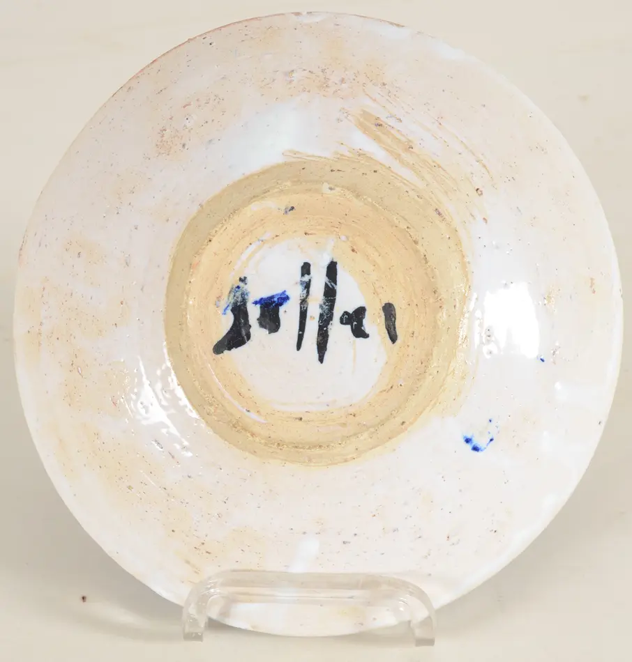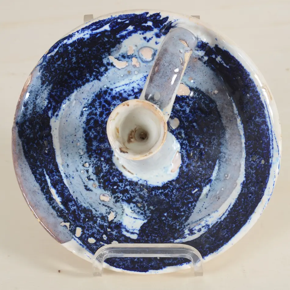Jack Jefferys (attributed to, 1896 - 1961), a ceramic chamberstick, free-thrown, probably 1950's, partial signature 'Jeffer...' on the bottom of the base, height aprrox 8 cm, diameter approx. 17,5 cm. In good condition