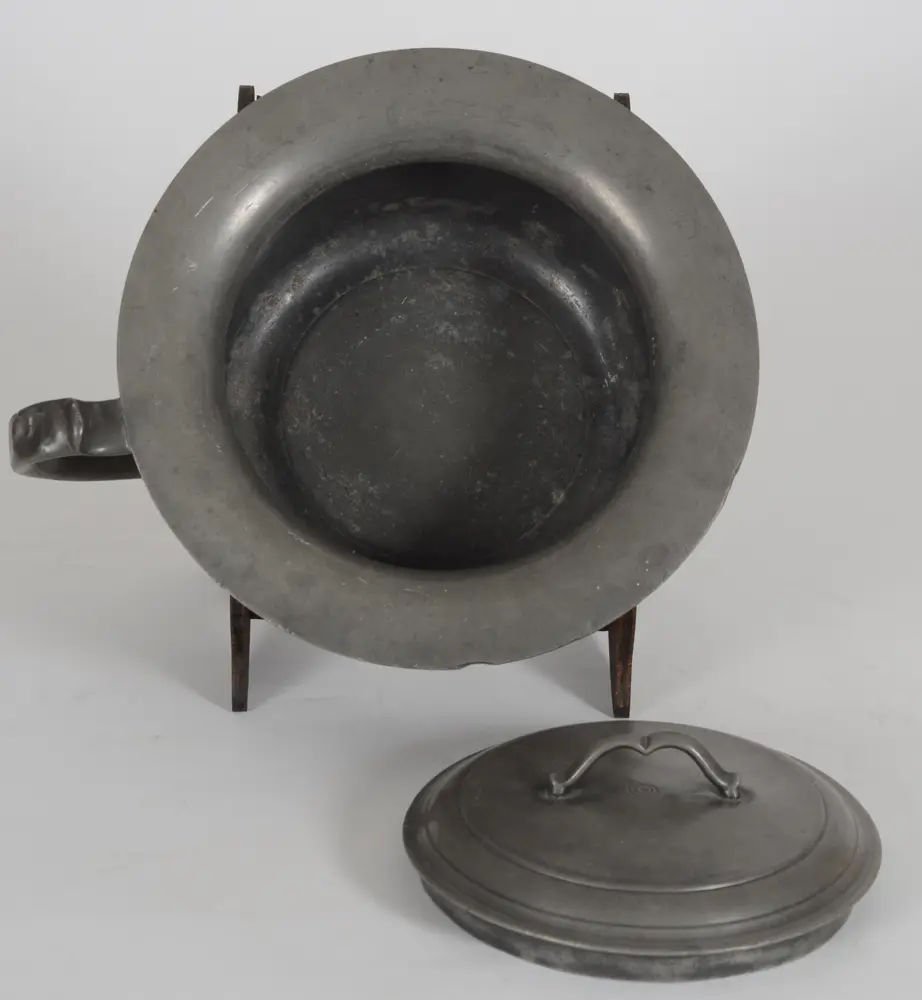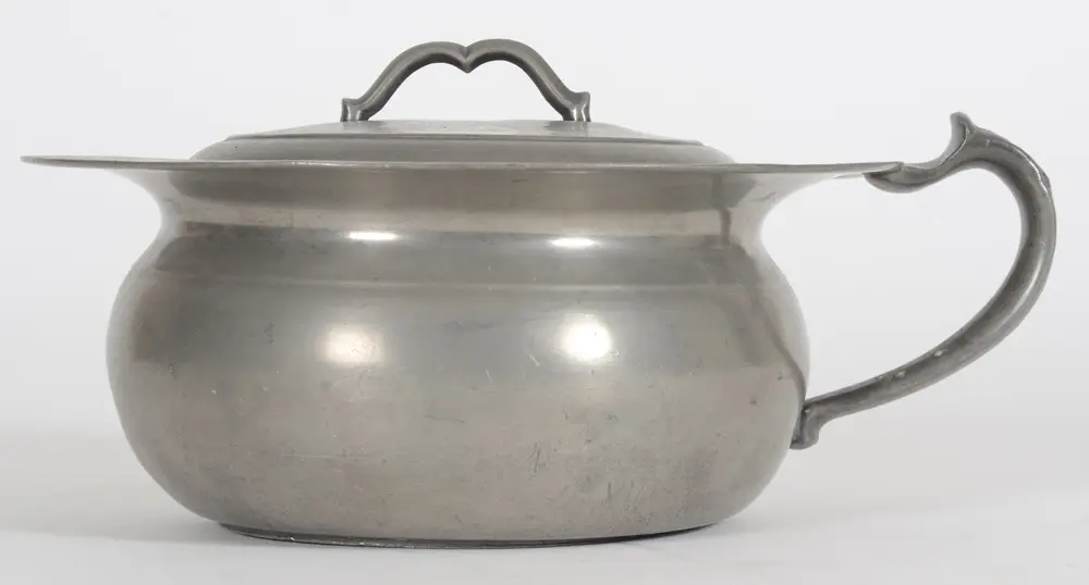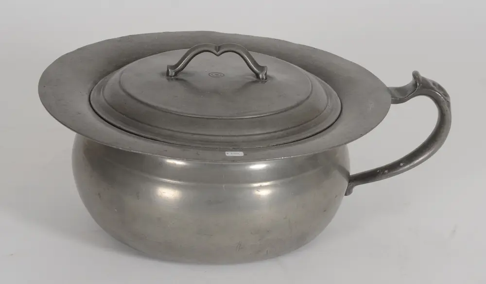 Jan Huising (Groningen), a functionning pewter chamber pot with lid , 19th century