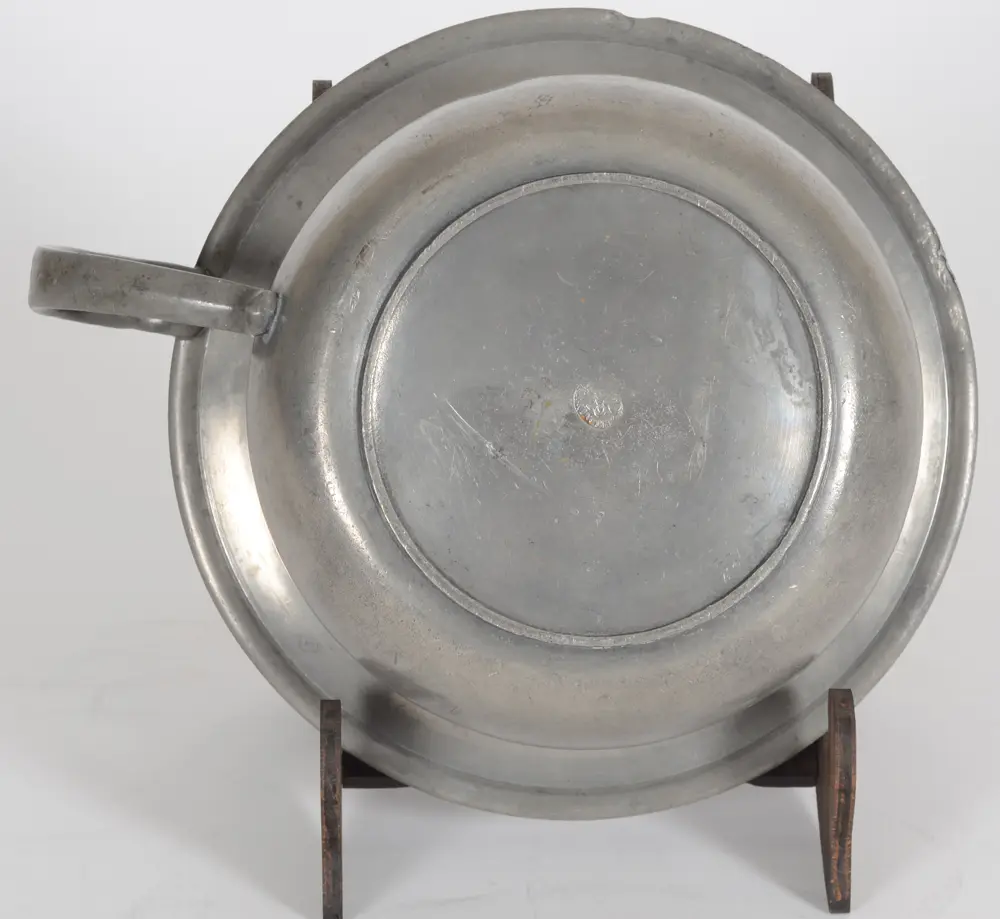 Jan Huising (active in Groningen between 1830 and 1874), a functioning pewter chamber pot with lid, 19th century, marked on the bottom of the base, diameter 25,5 cm, height 15 cm. Some dents and minor damage due to use and age,but overall in a reasonable condition.