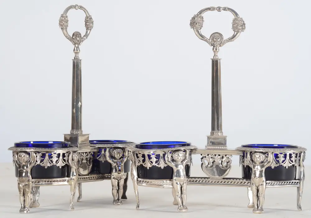 Jean-Pierre-Nicolas Bibron a pair of silver and blue glass 'Putti' salts in Empire style, 1809