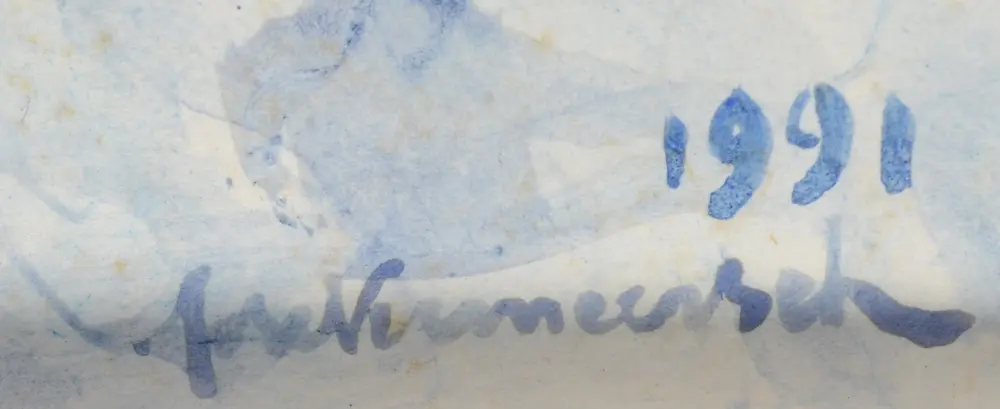 José Vermeersch (1922-1997), a figure and a dog, 1991, an original watercolour, signed and dated bottom right,48,5 x 37 cm (day measure), dimensions with frame 61 x 49,5 cm. Some minor foxing, no glass in frame.