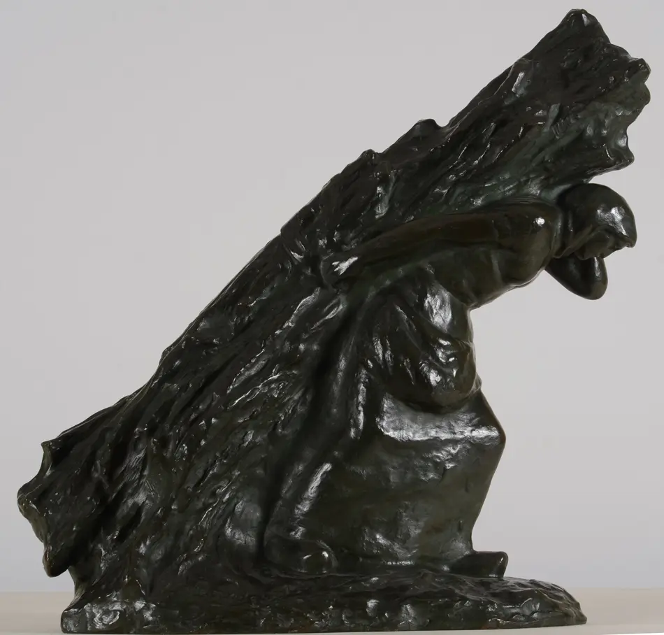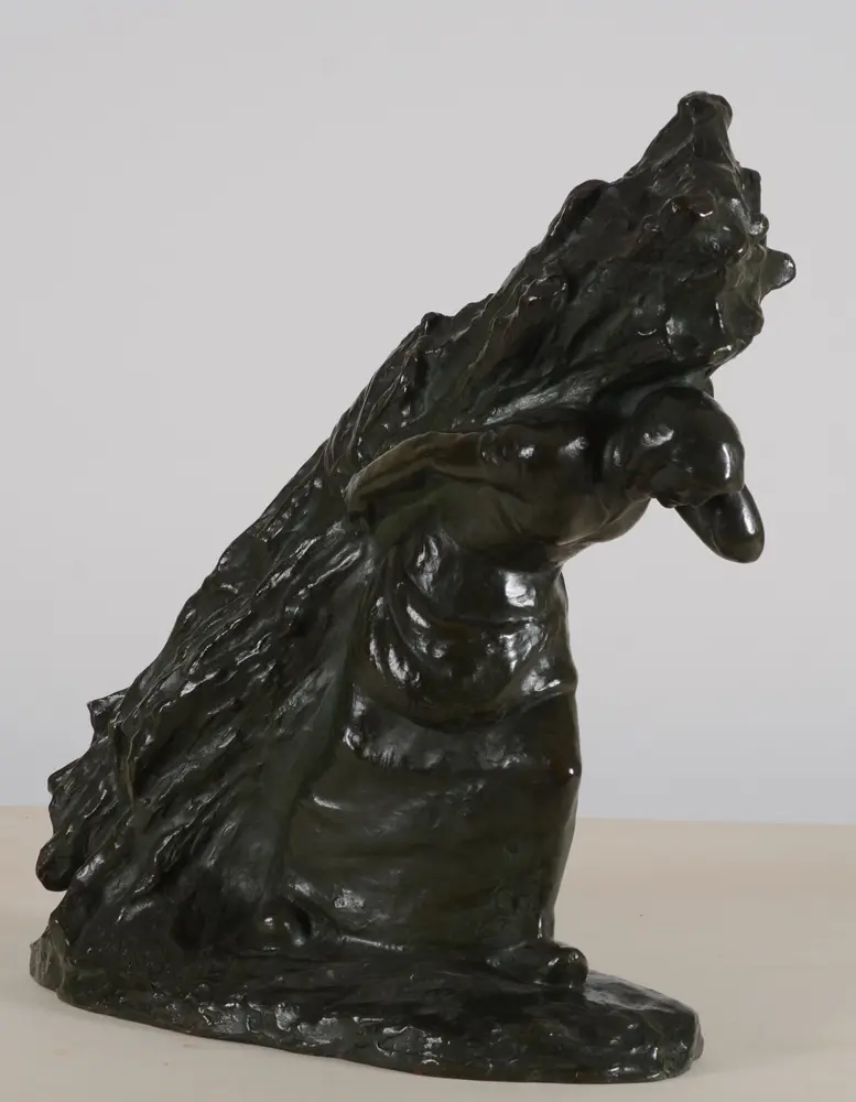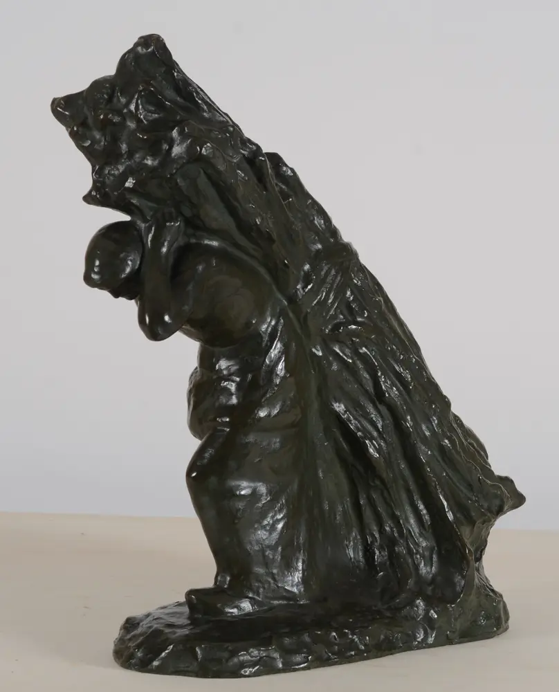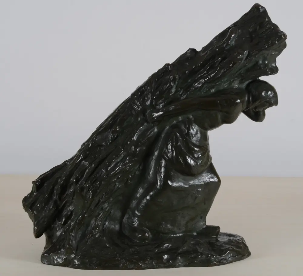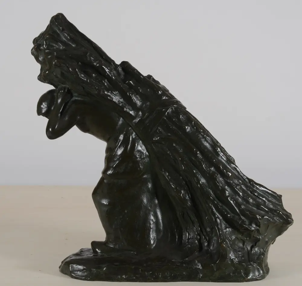 Joseph Witterwulghe (1883-1967), La Fagoteuse (the fire wood bundler), a period sand cast patinated bronze, signed on the base, dimensions approximately 59,5 x 55 x 25 cm. Weight 32,8 kg