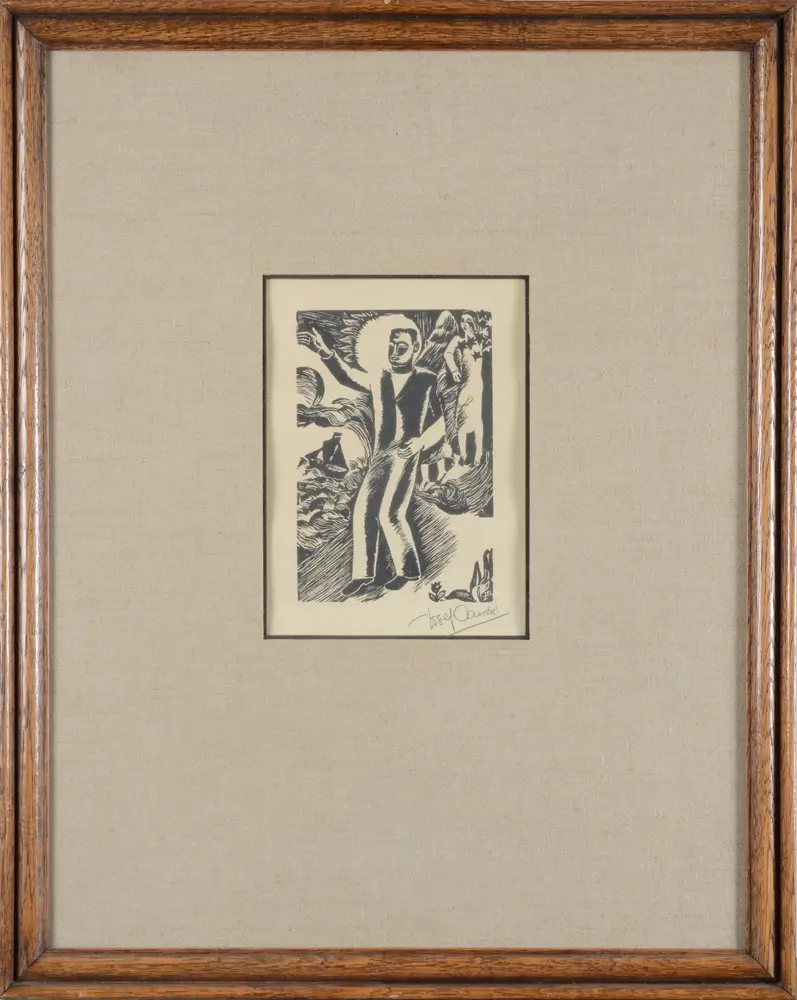 Jozef Cantré Rijmprent, an original woodcut from 1933