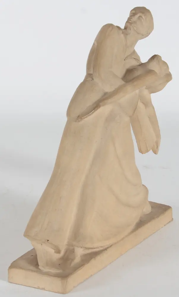Koos Van der Kaaji (1899-1976), the dancers, probably 1930's, a rare sculpture in pipe clay, signed on the base and justified '14/50', 26 x 33 x 7,5 cm. Loose on a wooden base (height with base 29,5 cm, a minor chip to the end of the hand of the female dancer, slightly soiled but otherwise in good condition with some traces of handling.