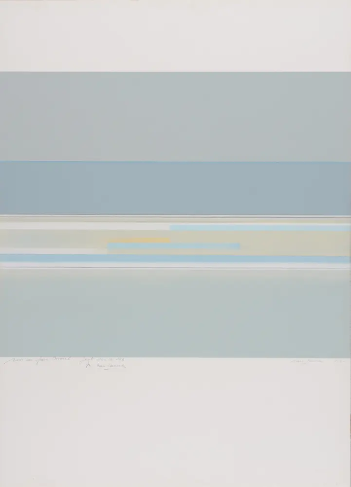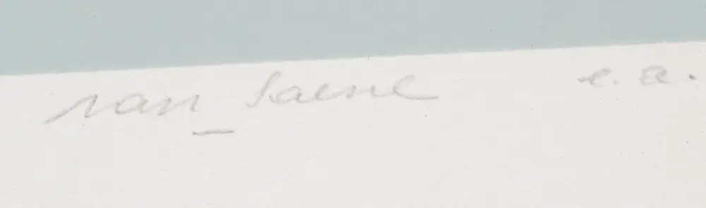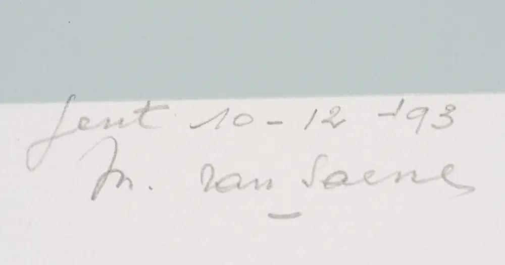 Maurits Van Saene (1919-2000), an abstract seascape, screenprint on paper, ca. 1993, signed by the artist in pencil bottom right and justified 'e.a.' (épreuve d'artiste) and also with a dated (10-12-93) and signed dedication bottom left, 70 x 50 cm. Unframed.