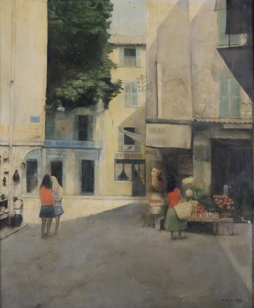 R. Obijn, view of a French city, 1954, oil on canvas