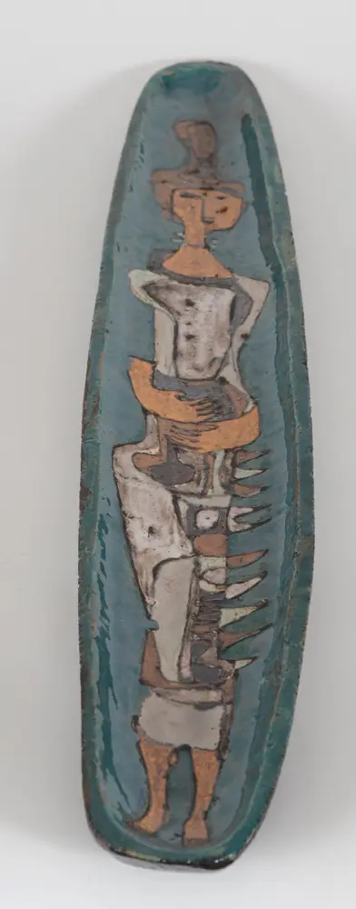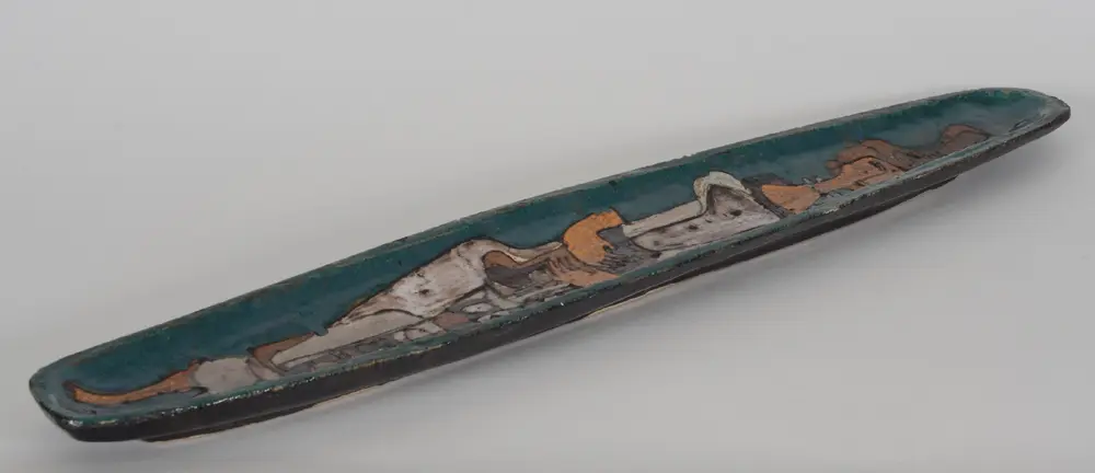 Achiel Pauwels a long 'canoe shaped' figurative dish