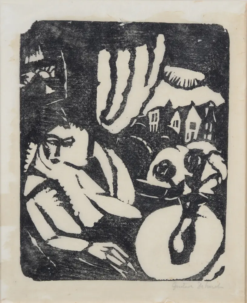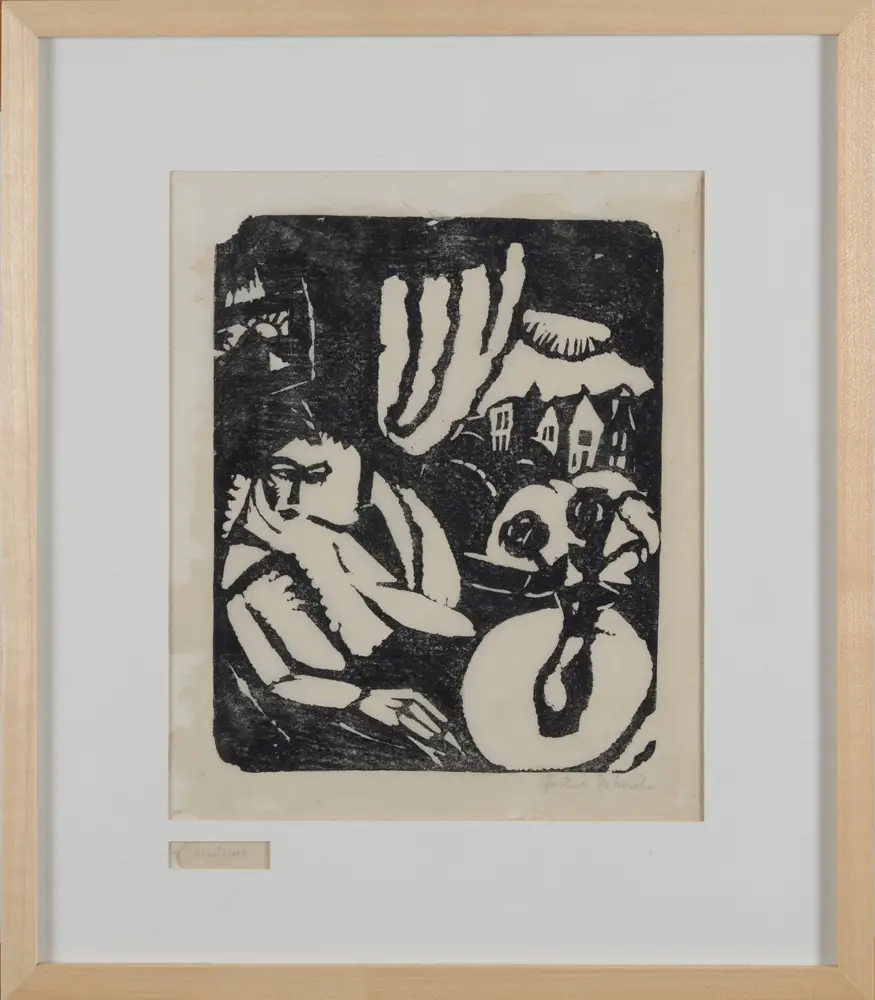 Gustave De Smet — Detail of the woodcut with original signature by the artist in pencil
