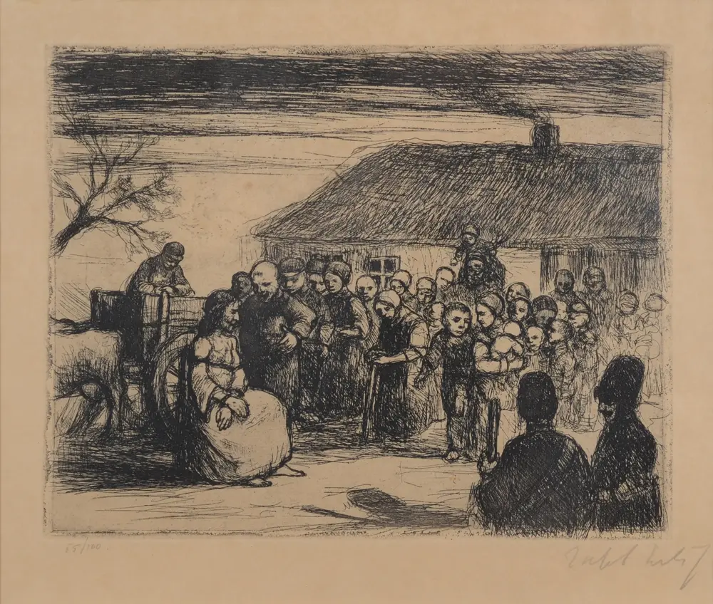 Jakob Smits (1855-1928), Christus bespot (Christ mocked), an important etching, only state (Lebeer 39), 20,9 x 27 cm (plate), dimensions with frame 50,5 x 55 cm, original signature (!) in pencil of Jakob Smits bottom right, justification in pencil '55/100' bottom left.Some minor foxing. Unexamined out of frame. The etching in an old frame by J. Milio en zonen, Antwerpen, the passe-partout browned. An original edition, not a posthumus one