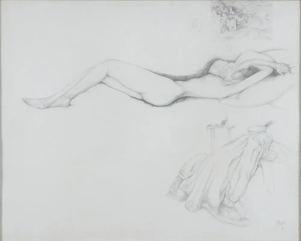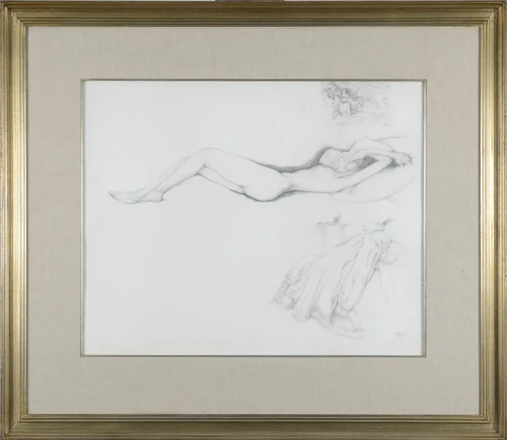 Jules De Bruycker Reclining Nude Drawing