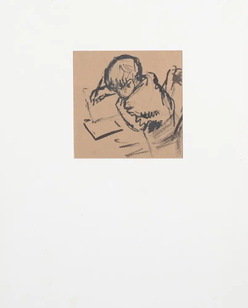 Maurice Dupuis (1882-1959) a study in ink on paper showing his son, Paul, sitting at a table writing, drawing or painting, apparently unsigned but with the studio sale stamp at the back, 11,5 x 11,5 cm (day measure), unframed.