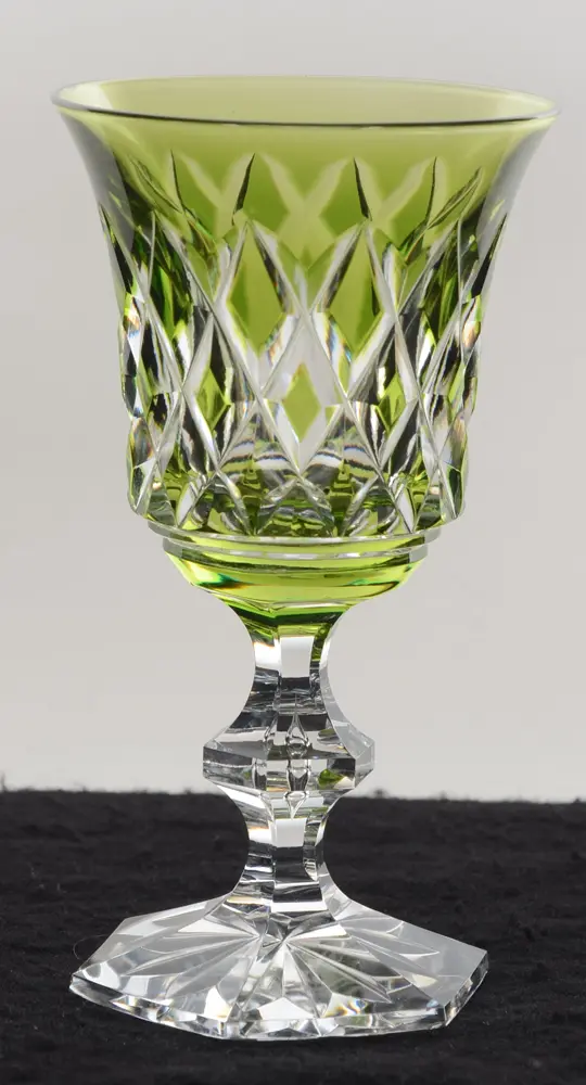 Val Saint-Lambert (Belgium crystal), model Metternich, taille fantaisie, cut crystal wine glass in green and white cristal, height 135 mm. (quantity: available)